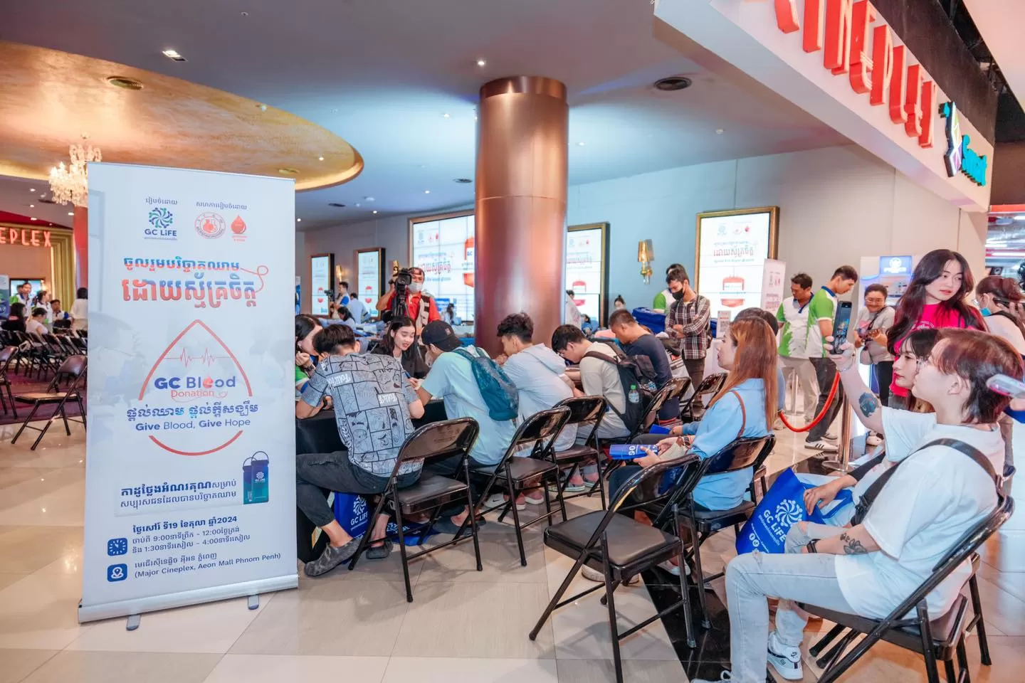 On Saturday 19th October 2024, GC Life Insurance proudly organized its fourth GC Blood Donation event at Major Cineplex, Aeon Mall Phnom Penh, marking a significant milestone in the company’s ongoing commitment to the health and well-being of the community. This event was a resounding success, exceeding expectations, with 520 compassionate individuals registering to donate blood, resulting in an impressive collection of 485 bags of blood. This achievement highlights the compassion and dedication of everyone involved.
