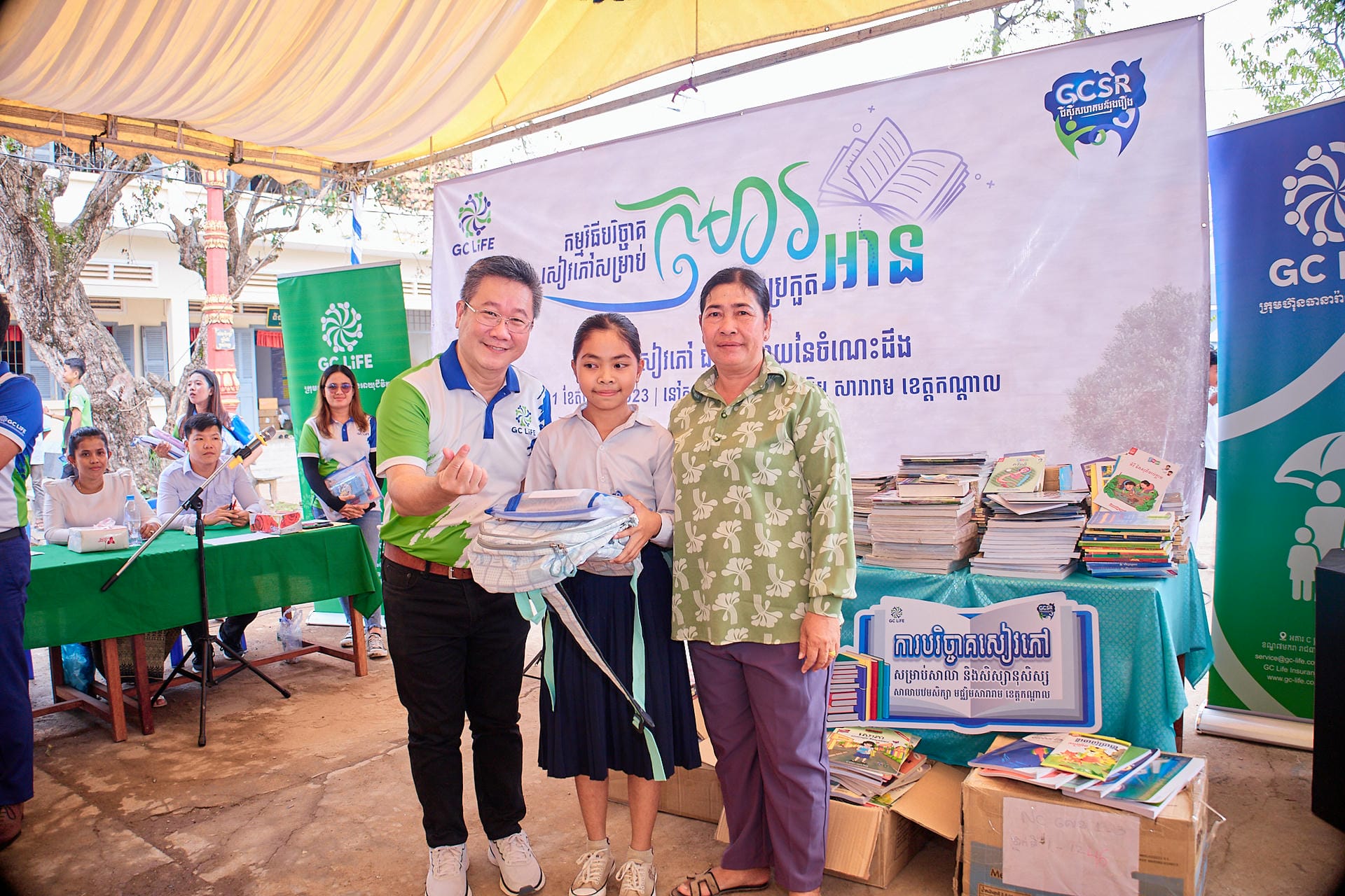 GC Life donated a total of 1,735 books, of which 1,235 were provided from 170 donors and another 500 books were from GC Life. The books will be placed in the school library and some have been distributed to the students as well. In addition, GC Life donated 2 million riels to the school to purchase needed items and materials for the library.