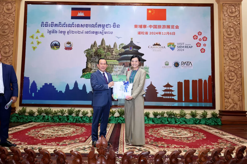 这场备受关注的展览会由柬埔寨旅游部部长H.E. Huot Hak下亲自主持,中国驻柬埔寨大使汪文斌、暹粒省副省长Ngoc Sengkang以及多位各界领导和贵宾齐聚一堂,共同见证这一盛会的开启。