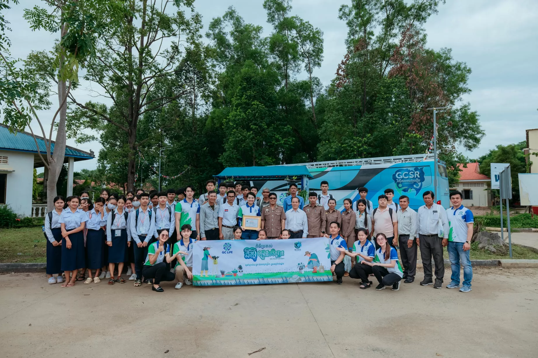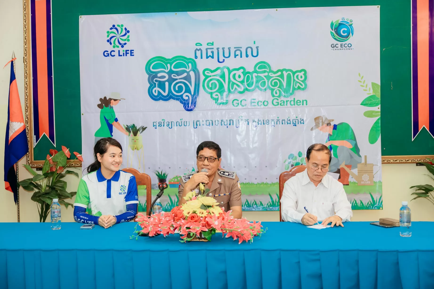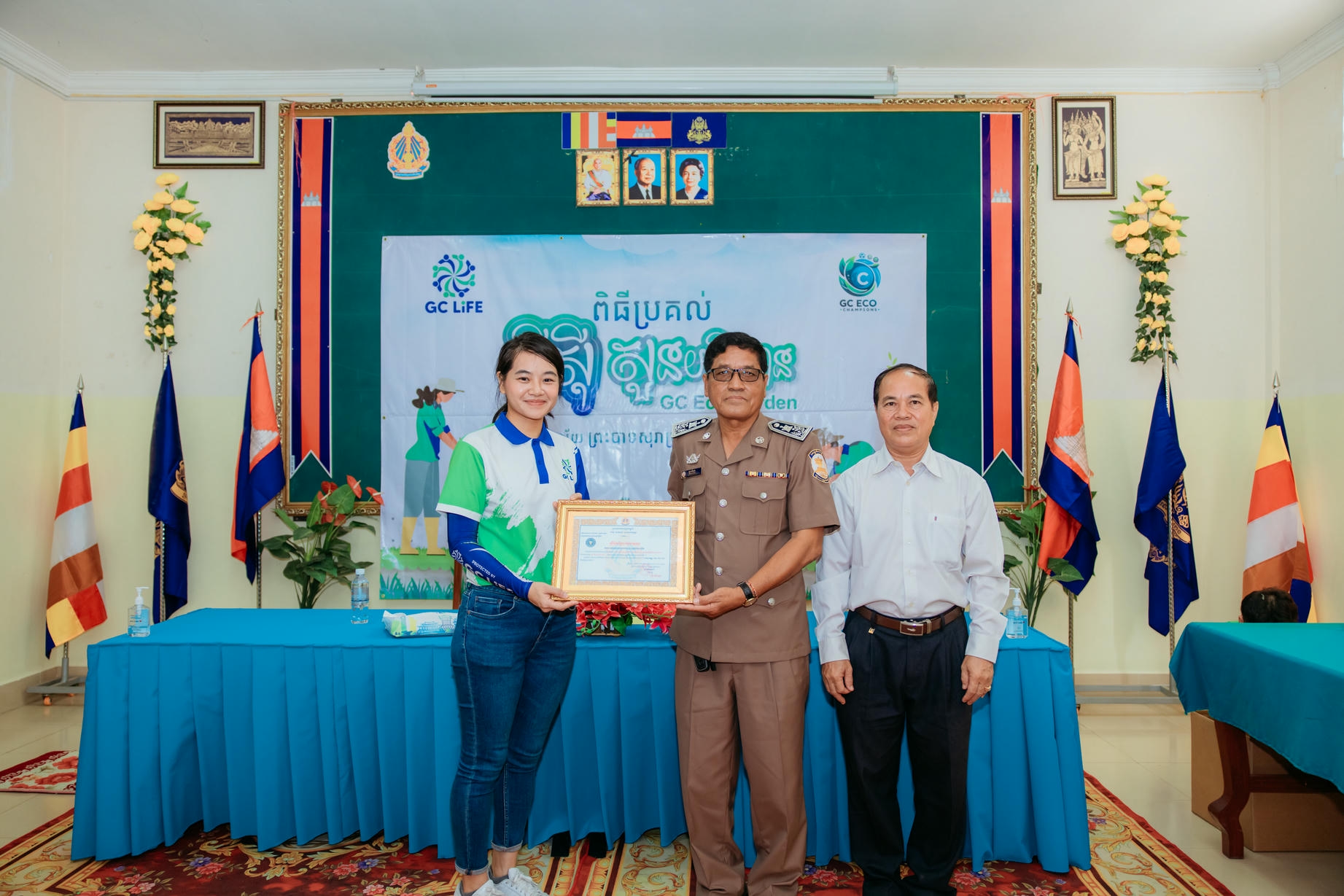 On 23rd July 2024, GC Life Insurance handed over a recycling made Eco Garden to Preah Bat Suramrit High School in Kampong Chhnang Province. This event was attended by Mr. Touch Ly Huot, Deputy Governor of Kampong Chhnang Province, Ms. Lao Choi Ian, CEO of GC Life Insurance and Mr. Oeur Mengchong, Director of Preah Bat Suramarit High School.
