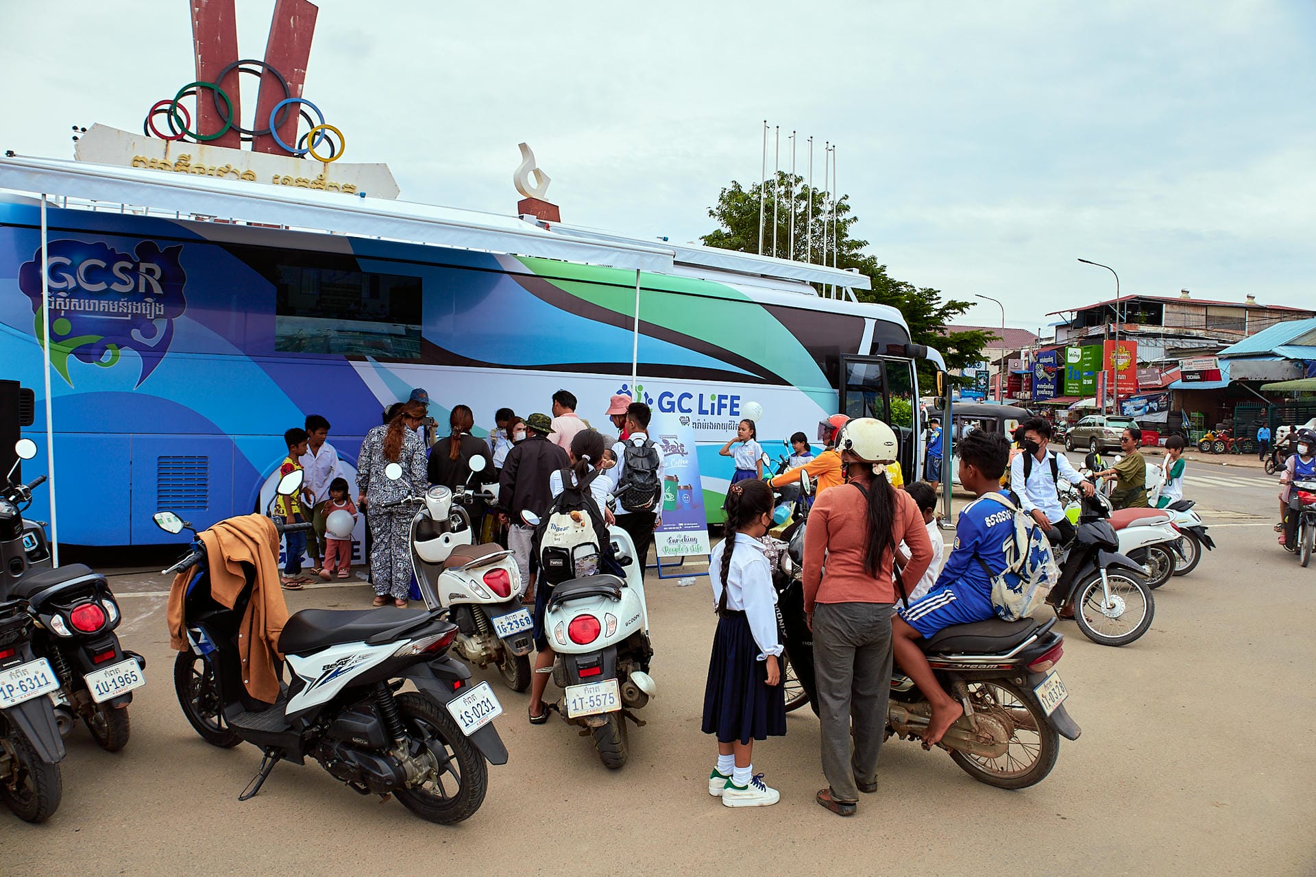 Following the official launch of GC Life’s GC Sahakom RongRoeurng (GCSR) project, the GCSR mobile bus has appeared on the streets of Phnom Penh and Takhmao and also proceeded to seven provinces including Kampot, Kep, Sihanoukville, Kampong Cham, Tbong Khmum, Kratie and Mondulkiri.