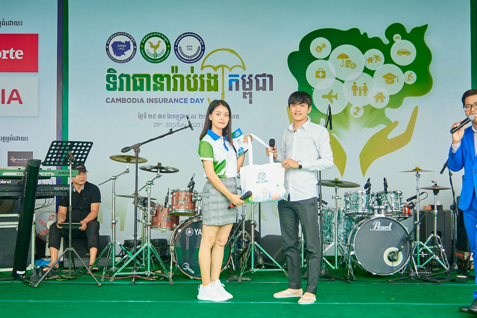 សកម្មភាពដ៏សប្បាយរីករាយនៅស្តង់ GC Life ក្នុងកម្មវិធី “ទិវាធានារ៉ាប់រងកម្ពុជា” នៅពហុកីឡាដ្ឋាន ខេត្តកំពត ថ្ងៃទី២៩ -៣០ ខែកក្កដា ឆ្នាំ២០២៣។