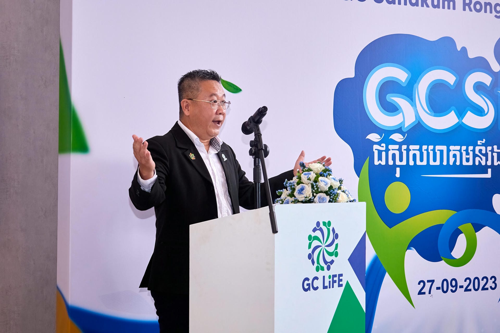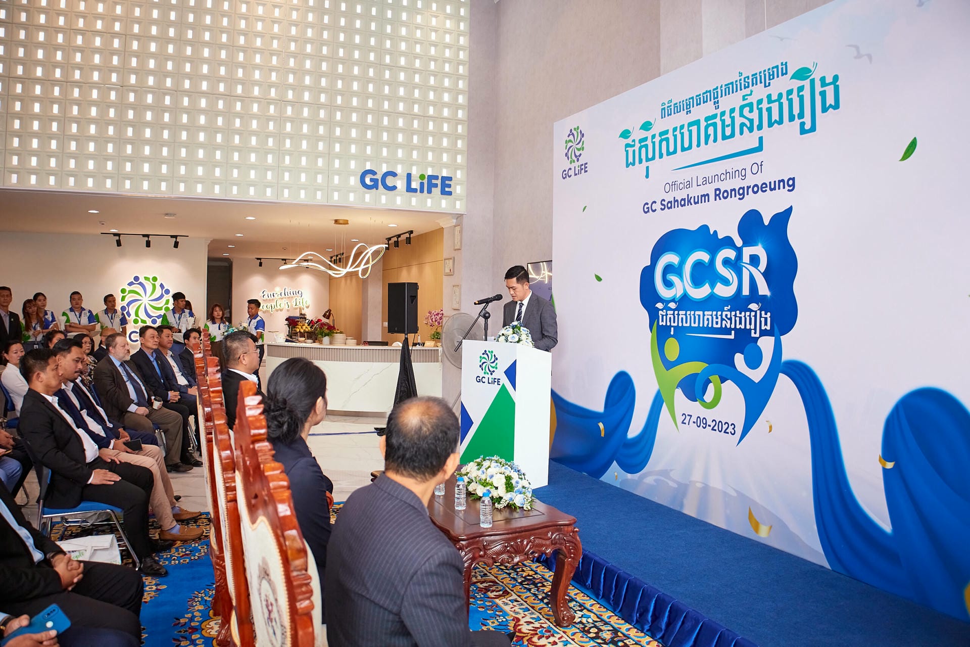 អបអរសាទរពិធីសម្ពោធជាផ្លូវការនៃគម្រោង “ជីស៊ីសហគមន៍រុងរឿង” របស់ក្រុមហ៊ុន GC Life ដែលបានប្រារព្ធធ្វើនៅថ្ងៃពុធ ទី២៧ ខែកញ្ញា ឆ្នាំ២០២៣។