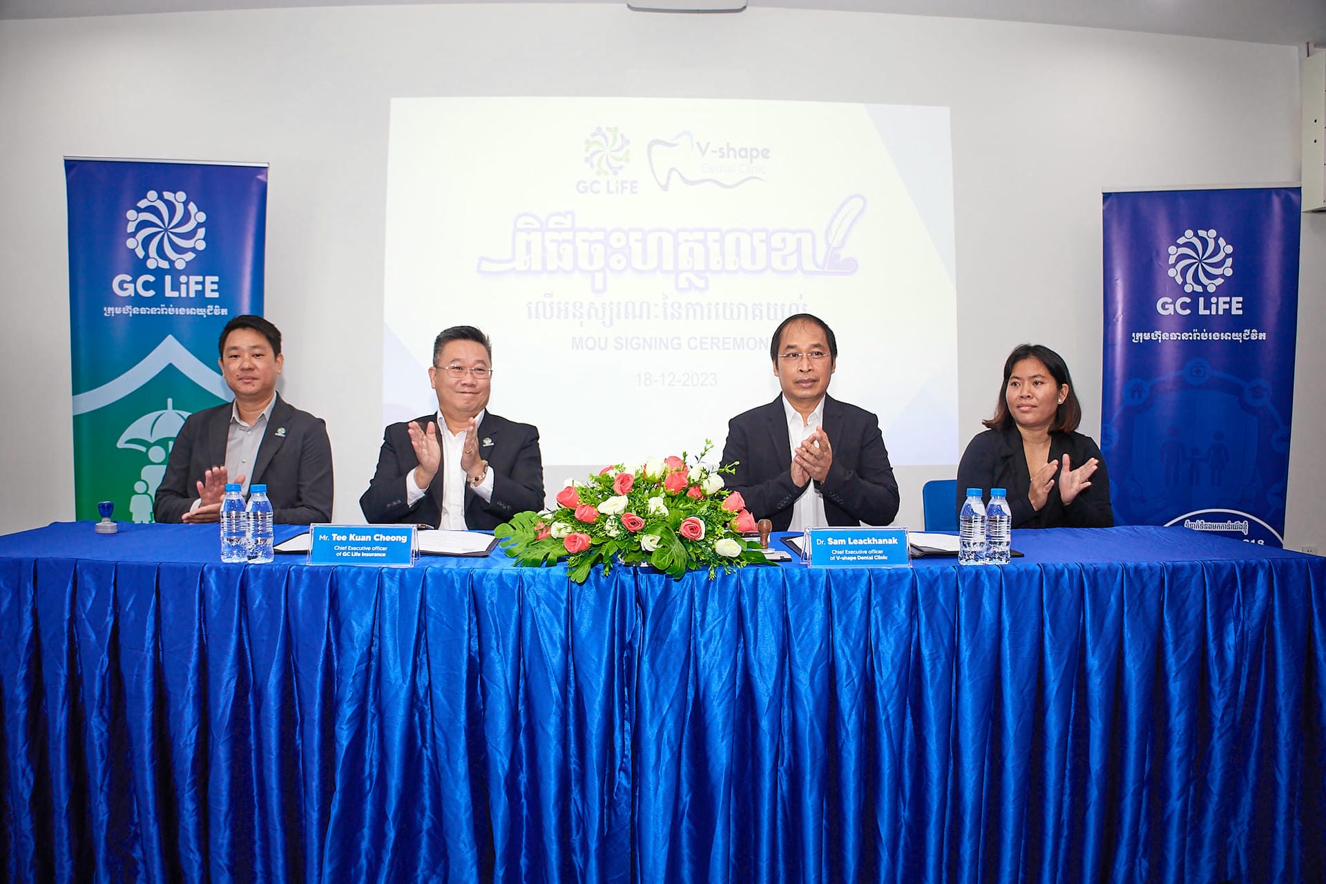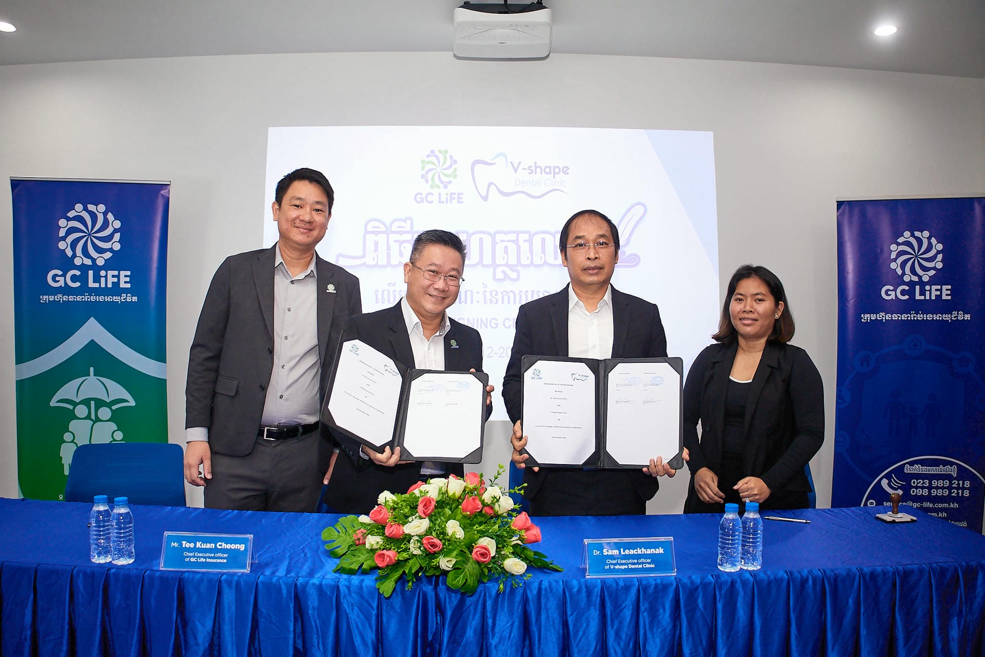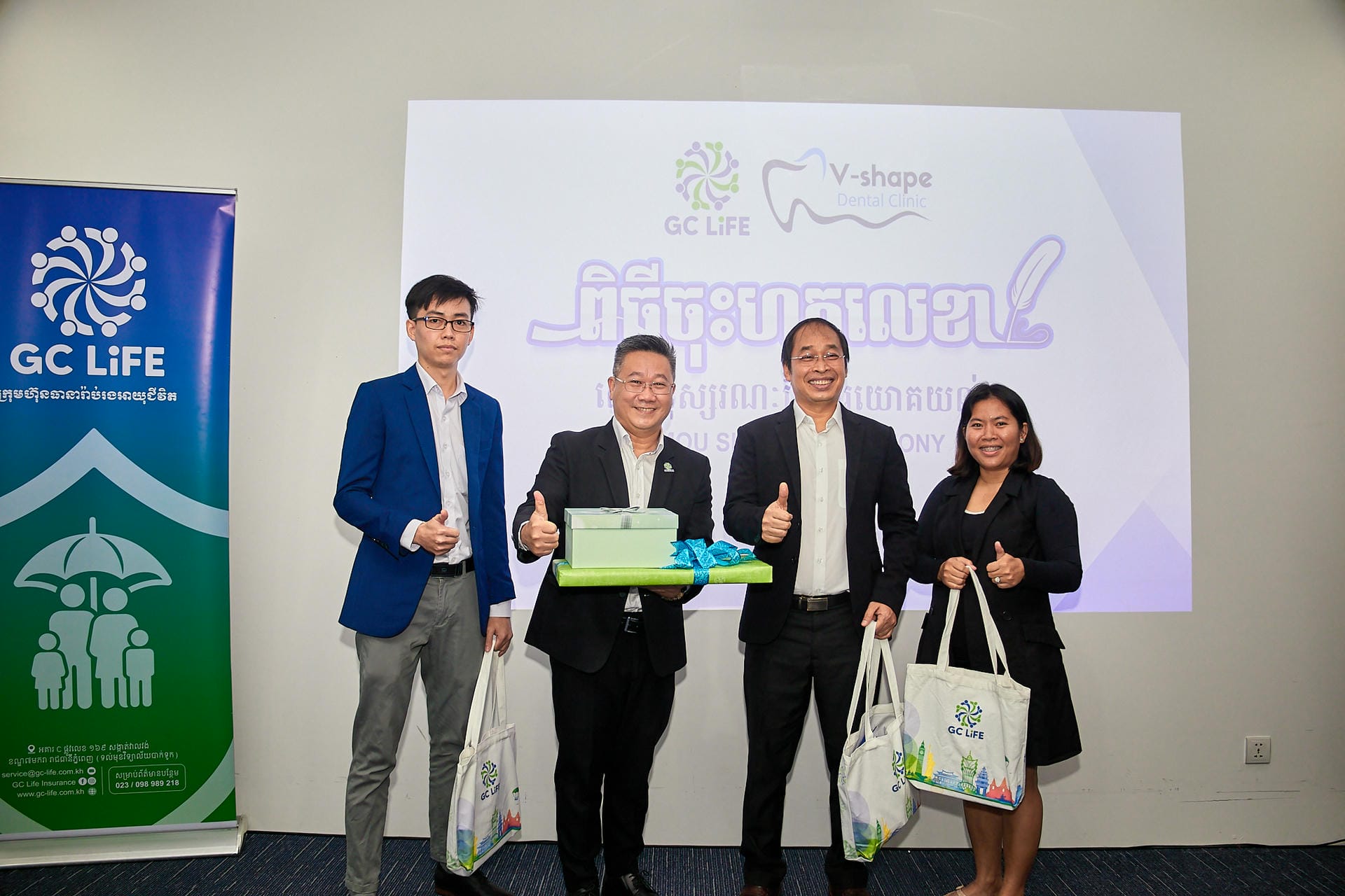 ពិធីចុះអនុស្សរណៈយោគយល់គ្នារវាងក្រុមហ៊ុនធានារ៉ាប់រងអាយុជីវិត GC Life និងពេទ្យធ្មេញ វីហ្សេប ដែលធ្វើឡើងនៅថ្ងៃទី 18 ខែ ធ្នូ ឆ្នាំ 2023 ក្រោមការអញ្ជើញចូលរួមដោយលោក Michael Tee នាយកប្រតិបត្តិនៃក្រុមហ៊ុន GC Life និង ទន្តបណ្ឌិត សំ លក្ខណៈ នៃពេទ្យធ្មេញ វីហ្សេប ព្រមទាំងបុគ្គលិក និងគណៈគ្រប់គ្រងនៃស្ថាប័នទាំងពីរ។