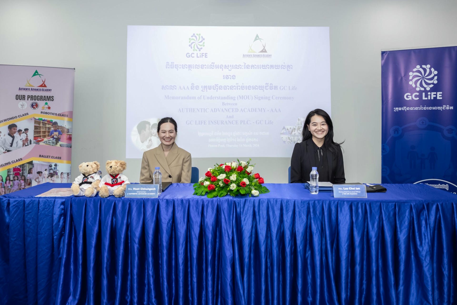 នៅថ្ងៃទី14 មីនា 2024 ក្រុមហ៊ុនធានារ៉ាប់រងអាយុជីវិត GC Life បានចុះហត្ថលេខាជាផ្លូវការលើកិច្ចព្រមព្រៀងដៃគូសហការជាមួយ សាលា AUTHENTIC ADVANCED ACADEMY (AAA)ដែលមានការចូលរួមពីថ្នាក់ដឹកនាំរបស់ស្ថាប័នទាំងពីរ។ពិធីចុះហត្ថលេខានេះនឹងជួយឱ្យស្ថាប័នទាំងពីរកាន់តែជិតស្និទ្ធជាមួយគ្នាថែមមួយកំរិតទៀត និងរួមគ្នានៅក្នុងការបំពេញបេសកកម្មរួមគឺ ការជួយគ្នាលើកស្ទួយវិស័យអប់រំសម្រាប់ប្រជាជនកម្ពុជា។